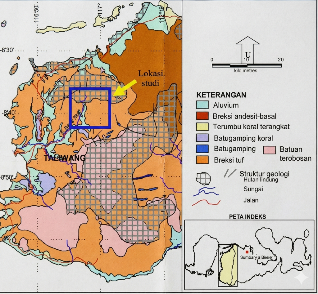 Berdasarkan data spasial dan peta geologi terbaru yang dihimpun tim redaksi, Taliwang secara alami adalah wilayah “mangkuk” atau cekungan yang dikelilingi perbukitan. Struktur tanahnya didominasi oleh formasi aluvium—tanah sedimen lunak yang secara historis terbentuk dari endapan banjir. Kondisi ini menempatkan Taliwang sebagai final catchment area atau titik akhir berkumpulnya air dari dataran yang lebih tinggi.